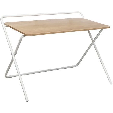 Largeur: 1000 mm, Hauteur maximale: 770 mm, Hauteur minimale: 650 mm, Poids net: 13 kg, Épaisseur panneau: 16 mm, Profondeur: 600 mm, Charge max.: 50 kg, Coloris piétement: Blanc, Matériau du piétement: Acier peint époxy, Réglage de la hauteur: Réglable par paliers, Coloris plateau: Chêne, Matériau plateau de table: Panneau MDF