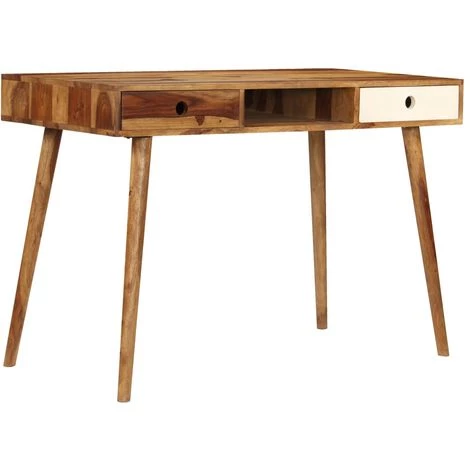 Ce bureau en bois solide de Sesham est élégant et pratique. Le design élégant fera de ce bureau un point central de toutes les pièces. Ce bureau a un plateau robuste. Ses 3 grands compartiments vous offrent un espace de stockage supplémentaire pour vos livres, collations et autres effets personnels. Ce bureau est en bois solide de Sesham. Le Sesham est un bois dur tropical connu pour ses grains riches et également connu sous le nom de bois de rose ou de palissandre. Ses beaux grains de bois rendent chaque meuble unique et légèrement différent l’un de l’autre. Les pieds en bois contribuent à la construction robuste. Notre bureau est facile à assembler. Remarque importante : les couleurs varient d’une pièce à l’autre, rendant chaque meuble unique ; La livraison est aléatoire.