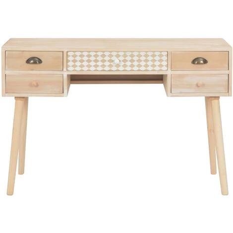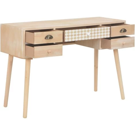 Ajoutez une touche de style rustique à votre décoration intérieure avec notre bureau élégant ! Ce bureau remarquable présente 5 tiroirs, dont l’un avec un motif décoratif, donnant au bureau un look magnifique et un grand espace de rangement. Il sera un complément pratique et décoratif à votre chambre d’étude, bureau ou chambre à coucher. Le grand dessus du bureau d’ordinateur est idéal pour ranger votre ordinateur portable, vos livres ou vos objets de décoration, tandis que les 5 tiroirs offrent suffisamment d’espace pour ranger toutes sortes d’objets plus petits comme des clés, des bloc-notes, des stylos et autres bibelots. En outre, fabriqué en MDF et en bois de pin solide, ce bureau est extrêmement stable et durable. Le bureau en bois est facile à assembler.