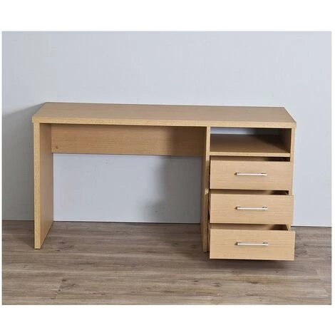 Bureau de haute qualité. La combinaison d’épaisseurs de 22 avec 16 mm. Il lui confère un aspect et un design d’une grande robustesse. Il a un trou et 3 tiroirs avec poignées et guides en métal. Largeur de la commode de 46 cm. donc l’espace intérieur libre est de 90,5 cm. Il intègre des arrêts de clous sur les jambes pour surmonter les irrégularités du sol. Il est fabriqué avec du carton de 22 et 16 mm. d’épaisseur et bord PVC de 1 mm.