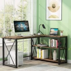 Tout à portée de main – Gardez tout ce dont vous avez besoin au travail à portée de main; ce bureau d’angle est livré avec 2 étagères et un bureau d’ordinateur spacieux pour garder vos fichiers et livres à portée de main. De plus, si vous avez besoin de plus d’espace, les étagères de niveau intermédiaire sous le bureau peuvent être déplacées pour faire de la place pour une tour d’ordinateur.