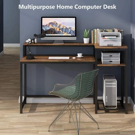 Grand rangement et bureau spacieux: conçu avec un grand bureau + une étagère pour support de moniteur + 2 avec étagères latérales ouvertes + support pour processeur, offrant suffisamment d’espace de stockage pour accueillir votre ordinateur portable, ordinateur, clavier, accessoires de bureau.