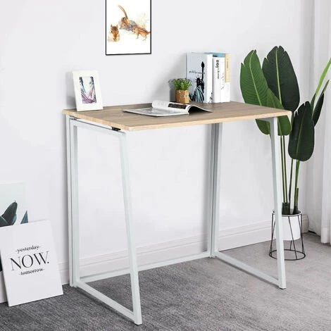 Bureau pliable étudiant pratique blanc et bois ordinateur/pc ASCOLI OAK A