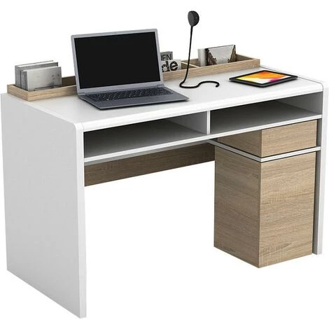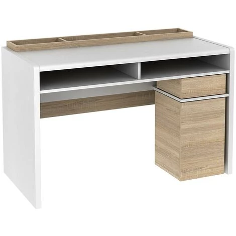 Le bureau ASERRI vous propose un plateau spacieux laissant de la place pour travailler confortablement. Aussi, divers rangements originaux et efficaces s’offrent à vous. En effet, vous bénéficierez de 3 grands espaces sur le plateau pour disposer votre matériel (stylos, trombones, agrafeuse…). Vous trouverez également deux niches classiques mais aussi deux niches et un tiroir pivotants dans lesquels ranger l’ensemble de vos documents.