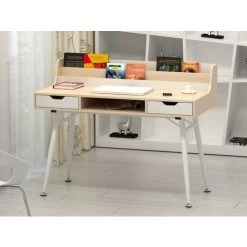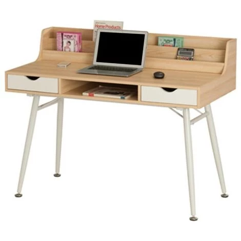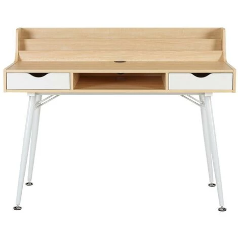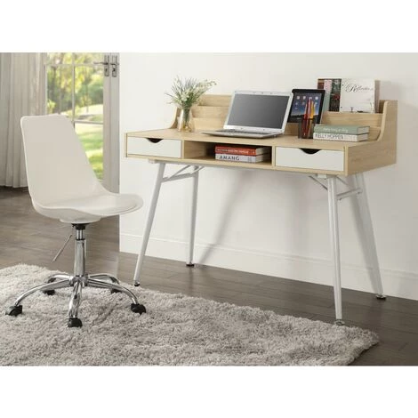 Avec le bureau LARCOS, organisez vous un espace de travail ultra-cosy ! Grâce à ses rangements verticaux, vous pourrez avoir vos documents sous les yeux. Ses 2 tiroirs et sa niche vous offrent des espaces de rangement supplémentaires. Son coloris chêne et blanc et son aspect épuré lui donne un look contemporain et scandinave.
