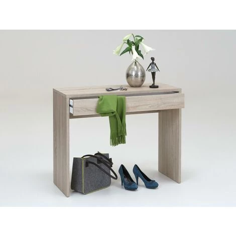Avec ses lignes épurées et son grand tiroir, cette console vous offrira un bel espace de rangement pour votre intérieur et pourra tout aussi bien être utilisée en bureau.