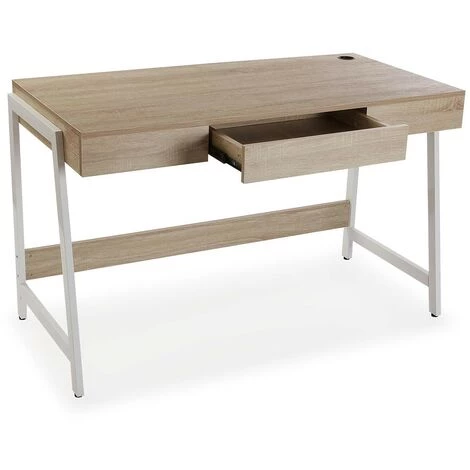 - CARACTÉRISTIQUES – La bureau meuble Versa a la taille parfaite pour la chambre, le bureau ou le studio. La table a une hauteur de 76 cm, une longueur (profondeur) de 124 cm, et una largeur (d’un côté à l’autre) de 60 cm. Le poids est de 20 kg et est fabriqué en revêtement en aggloméré et mélaminé et métal. Coleur: marron et blanc.