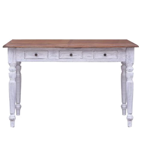 Ce bureau en bois, équipé de 3 tiroirs, dégage un charme rustique et sera un supplément élégant et pratique à n’importe quel décor. Il peut également être utilisé comme table de couloir ou table de console.