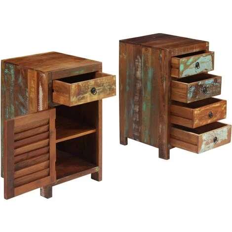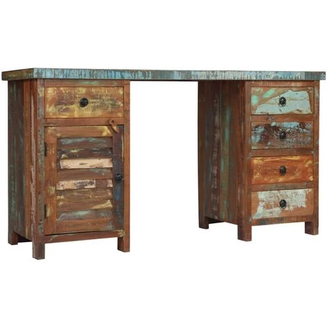 Le bureau est fait de bois massif de récupération provenant de solives, de planchers et de poutres de soutien de vieux bâtiments qui sont démolis et peut être composé de différents types de bois comme pin, teck, hêtre, chêne, cèdre, bois de manguier, acacia, etc. Cela signifie que le bois de récupération conserve les caractéristiques de ces différents types de bois. Le bois de récupération est déjà vieilli, patiné et séché, donc il ne rétrécit pas et ne se plie pas. Les belles veines de bois rendent chaque meuble unique et légèrement différent l’un de l’autre. Les signes d’usure et la structure du grain visible donnent également à chaque table de travail sa propre histoire et un aspect unique. Chaque étape du processus est réalisée avec le plus grand soin, que ce soit le polissage, la peinture ou le laquage. Le bureau dispose de 5 tiroirs et d’une armoire qui offrent suffisamment d’espace pour ranger des petits objets tels que des clés, des blocs-notes et d’autres bibelots. Le design du piédestal est non seulement attrayant mais multifonctionnel, car grâce au dessus de table amovible, le bureau peut être facilement transformé en 2 armoires latérales séparées. L’assemblage est facile.