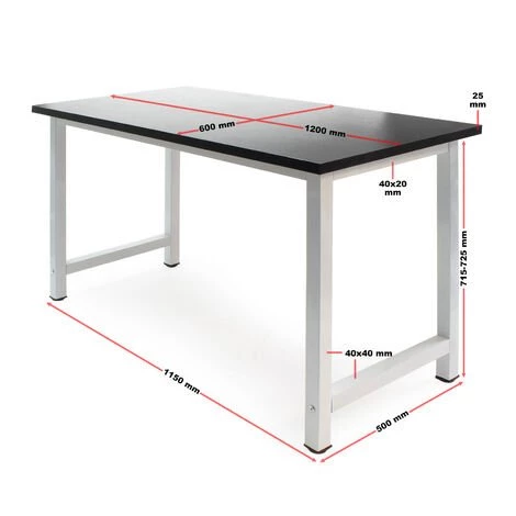 Bureau 120x60x74cm Noir Ordinateur Surface de travail Meuble Métal