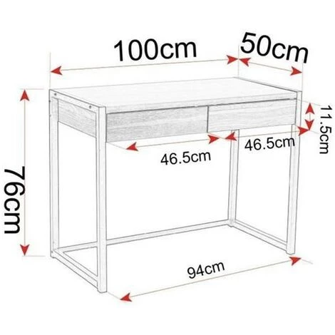 – Le bureau avec 2 tiroirs fournit assez d’espace pour de petites fournitures de bureau.