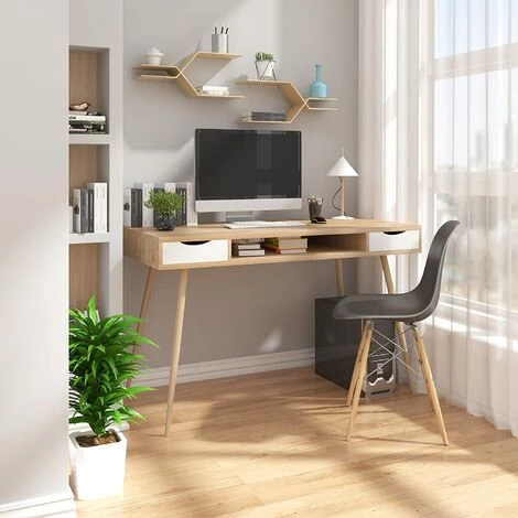 – Le bureau avec 2 tiroirs et 1 étagère centrale fournit assez d’espace pour de petites fournitures de bureau.