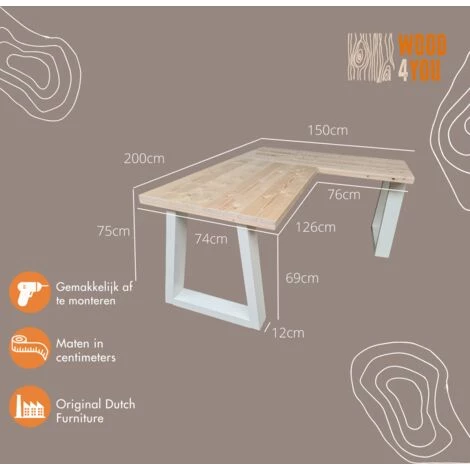 1x 124/76cm (placer horizontalement) & 150/76cm (placer verticalement à côté de l’autre plateau de table) et 3 pieds de table séparés, de sorte que vous pouvez faire n’importe quel arrangement souhaité.