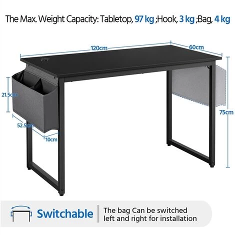 - CONÇU POUR LA COMMODITÉ: Le bureau comprend 1 œillet de bureau pour collecter et cacher les câbles hors de vue. Il a un crochet en métal pour accrocher votre casque / porte-documents d’un côté et un sac de rangement en tissu pour les livres / documents de l’autre côté.