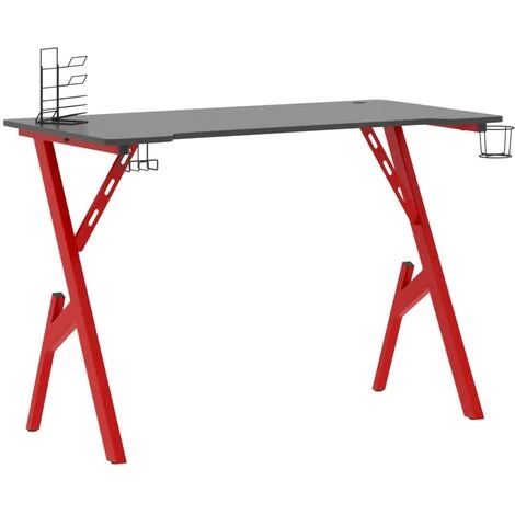 Ce bureau de jeu garantit votre concentration et votre confort tout en jouant ou en travaillant. La conception ergonomique simplifiée offre une posture de jeu parfaite, vous aidant à jouer plus longtemps et plus fort ! Ce bureau d’ordinateur comprend un support d’écouteurs et un support de contrôleur, qui peuvent tenir vos écouteurs au bout de vos doigts. Il a également un porte-gobelet pour garder vos boissons. Il fournit un espace massif pour vos moniteurs de jeu, PC, claviers de jeu et autres équipements de jeu. De plus, la conception des pieds en forme de Y en fer le rend stable et peut résister aux exigences de tout joueur sérieux.